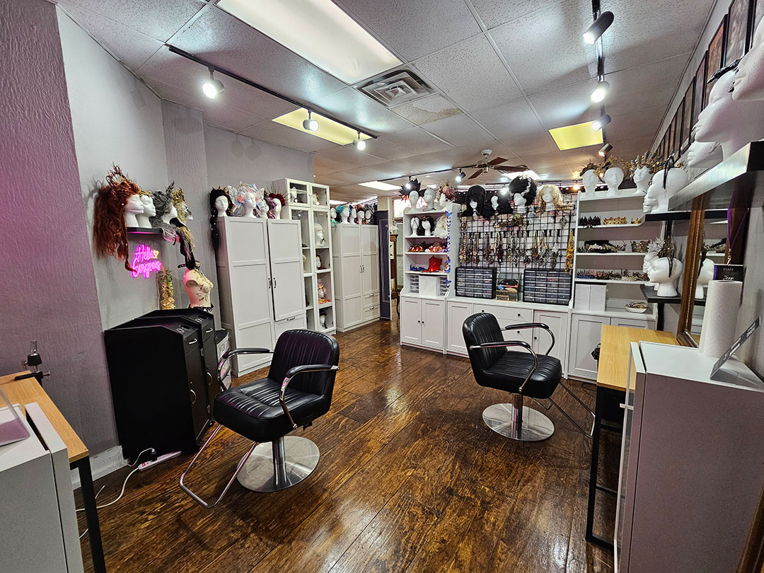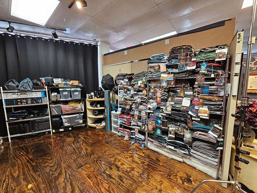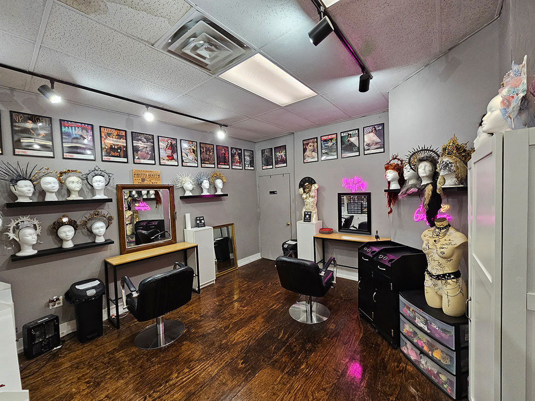 The 2,600 sq. ft. studio is designed for both comfort and creative freedom, featuring 10-foot ceilings, a full blowout salon with two styling stations, two restrooms and changing rooms, and a comfortable client sitting area with a stylish couch. The expansive layout allows for seamless shooting and easy transitions, making it ideal for a wide range of photography sessions.
